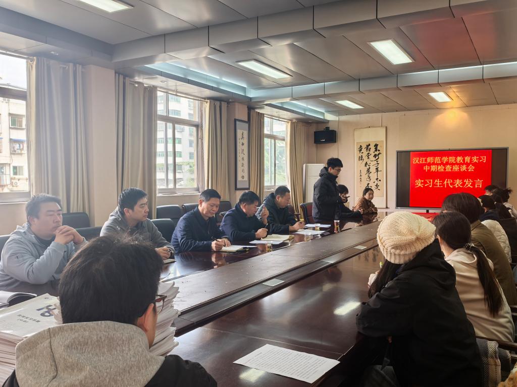 为精准掌握实习生实习动态,切实提升教育实习质量,11月12日上午,汉江师范学院体育学院副院长赵鹏、教研室主任周延、校内指导老师杨帆及辅导员周杨一行前往十堰市第二中学,以走访座谈形式开展实习中期检查工作。十堰市第二中学副校长郭开平、教务处主任施士兵、实习指导老师谷雨、彭军及12名实习生代表共同参与座谈。