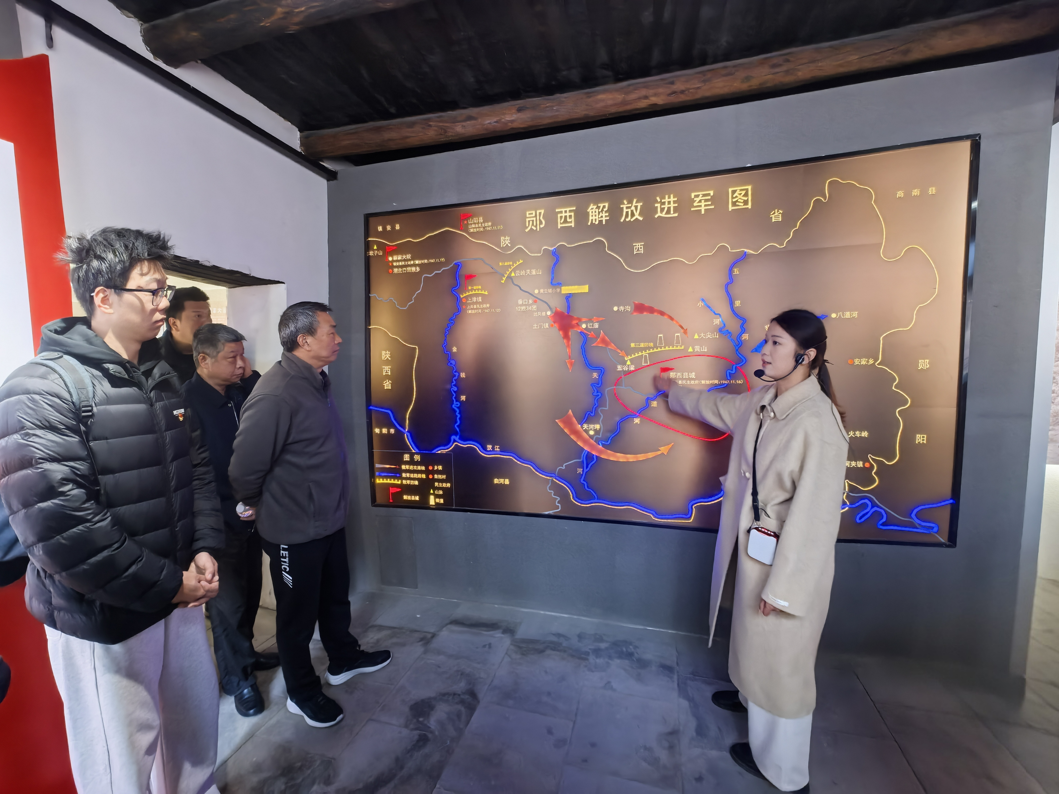 第一站,前往郧西县土门镇的“湖北解放第一县”展览馆。在讲解员的生动讲述下,一幅幅珍贵的历史照片、一件件斑驳的革命文物,将党员们带回到解放战争时期郧西人民支援前线、浴血奋战的峥嵘岁月。通过详实的史料和场景复原,同志们深入了解了解放军在郧西地区开展游击战争、建立革命根据地的光辉历程,深刻感受到军民鱼水情深的革命传统。