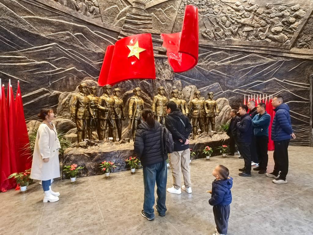 第二站,队伍来到国家长征文化公园郧西段(王家坪革命烈士纪念馆)。在庄严肃穆的纪念碑前,跟随讲解员系统学习了郧西革命斗争史。从早期共产党人秘密建立党组织,到抗日战争时期组织抗日武装;从解放战争中"三进三出"的英勇战斗,到新中国成立后建设家乡的奋斗历程,一个个鲜活的英雄事迹让党员们深受触动。馆内一张《什么是红军》传单,被精心装裱在展柜中,纸面虽有多处磨损,墨色却依旧清晰有力。讲解员轻声介绍,这是1932年红三军在郧西开展革命活动时印发的宣传品,当时红军战士们冒着生命危险,将这样的传单贴在村口老槐树上、塞进门缝里,甚至揣在怀里向乡亲们逐字讲解。凝视着这张穿越烽火的传单,党员们仿佛看到了当年红军战士走村串户、与乡亲们促膝长谈的场景,看到了老乡们悄悄为红军送粮、掩护伤员的身影。