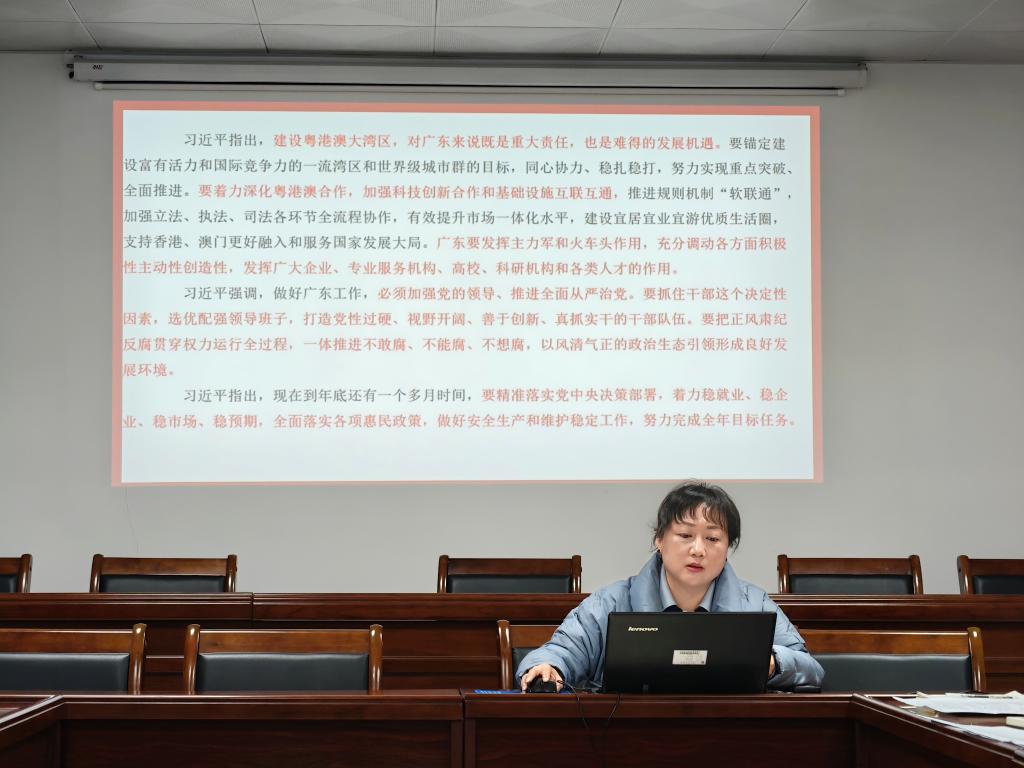 学院分党委书记陈露主持,院理论学习中心组成员参加学习。会议围绕《习近平对全面依法治国工作作出重要指示强调坚持党的领导人民当家作主依法治国有机统一合力开创法治中国建设新局面》《习近平在广东考察时强调深入学习宣传贯彻党的二十届四中全会精神以全面深化改革开放推动高质量发展》《关于实施学生体质强健计划的意见》《关于进一步减轻中小学教师非教育教学负担若干措施的通知》深入学习和研讨。