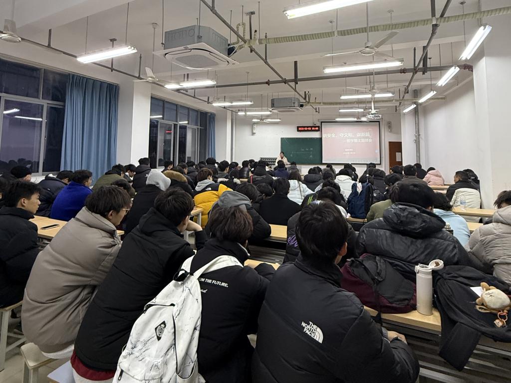 在安全教育环节,辅导员结合春季安全风险特点开展重点宣讲。针对电信网络诈骗高发态势,提醒同学们提高警惕,严格做到不泄露个人信息、不点击陌生链接、不随意添加陌生好友,守好个人财产安全。在寝室安全方面,着重强调规范用电、人走断电、随手关灯,严禁在宿舍内吸烟,严防触发烟雾报警器,杜绝消防安全隐患。